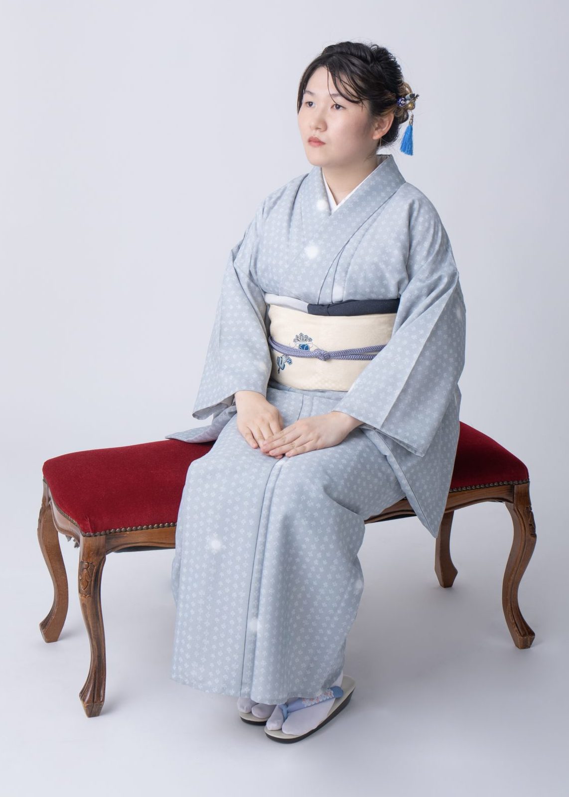 そんな五ェ門のイメージカラー「青」をベースに、今回は涼しげなアイスブルーの着物をチョイス。