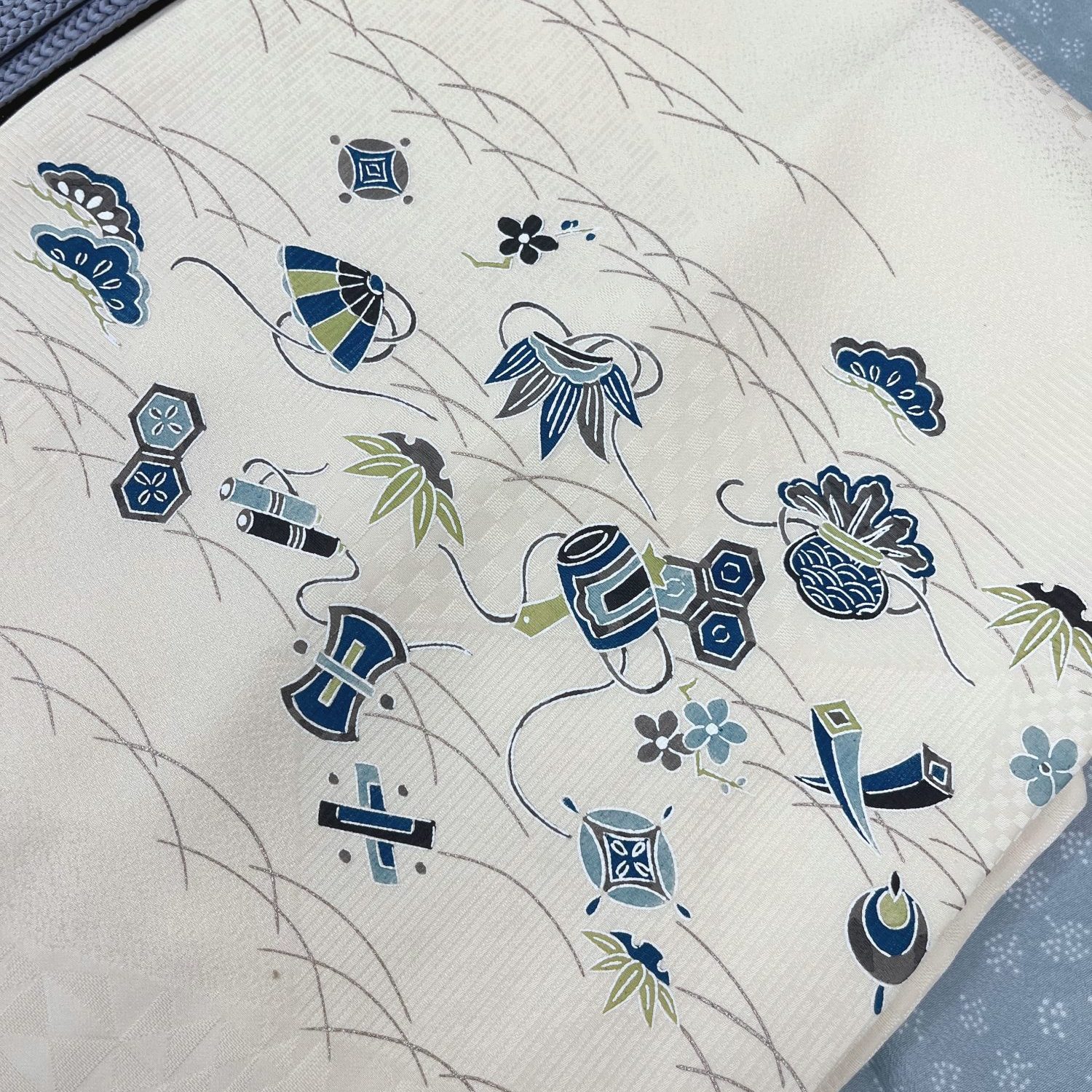帯には、“宝物を集め並べた”縁起の良い柄「宝尽くし」を合わせました。