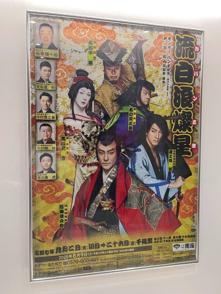 その中でも、刀を操る「石川五ェ門」は、実は歌舞伎の世界に先祖である「石川五右衛門」が主人公の歌舞伎「楼門五三桐」という演目があります。なので今回のポスターの「石川五ェ門」は「青」の着物を着用しておりました。
