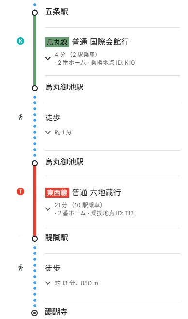 夢館の最寄り駅烏丸線五条駅から出発。烏丸御池駅で東西線へ乗り換え醍醐駅にて降車。駅から徒歩13分で醍醐寺に着きます