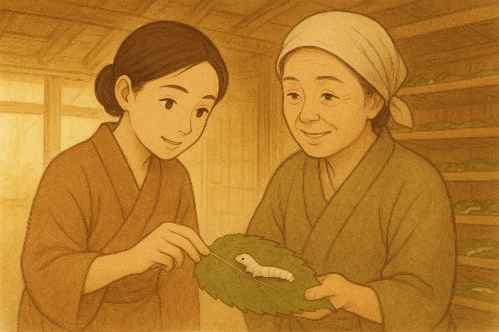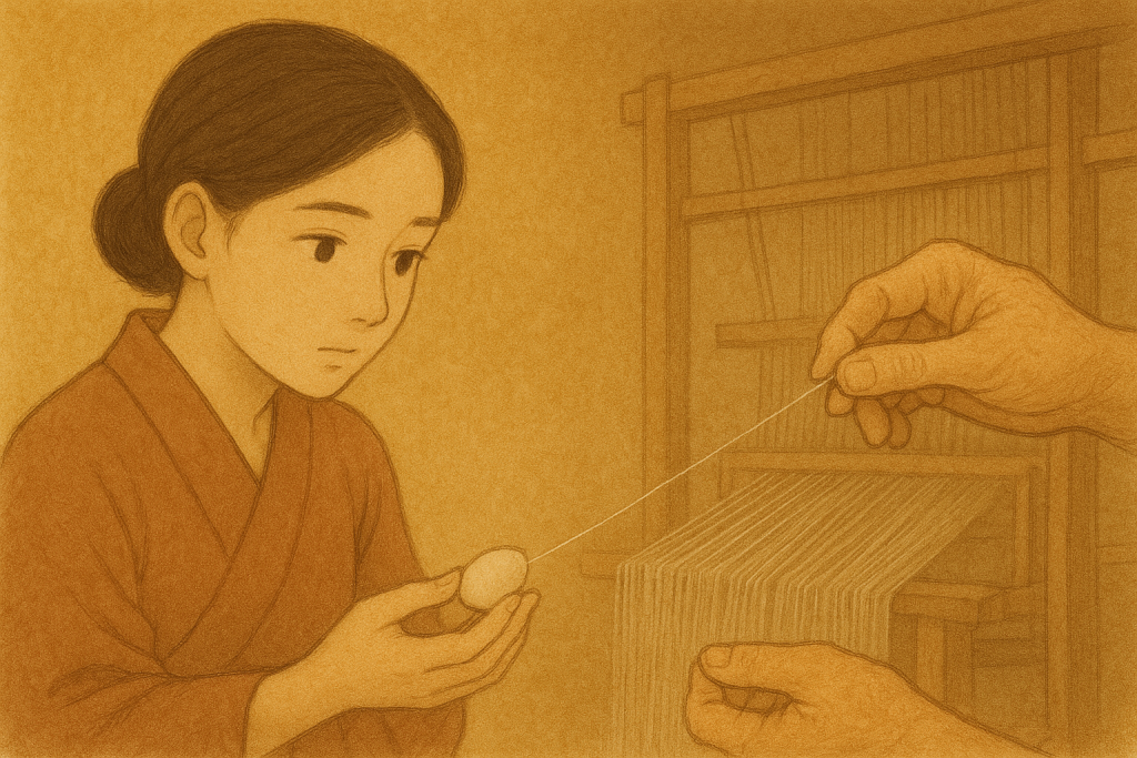 桑(餌となる植物)と蚕を育てて繭を取り(養蚕業)、