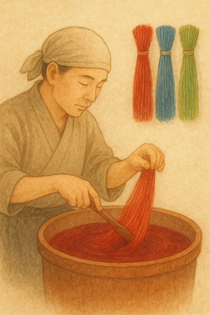 染めたり、織ったり、柄をつけて、